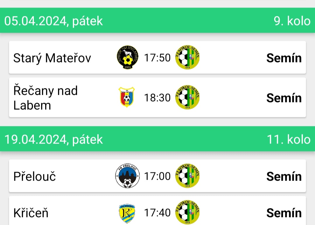 plán dalších utkání Sokola Semín