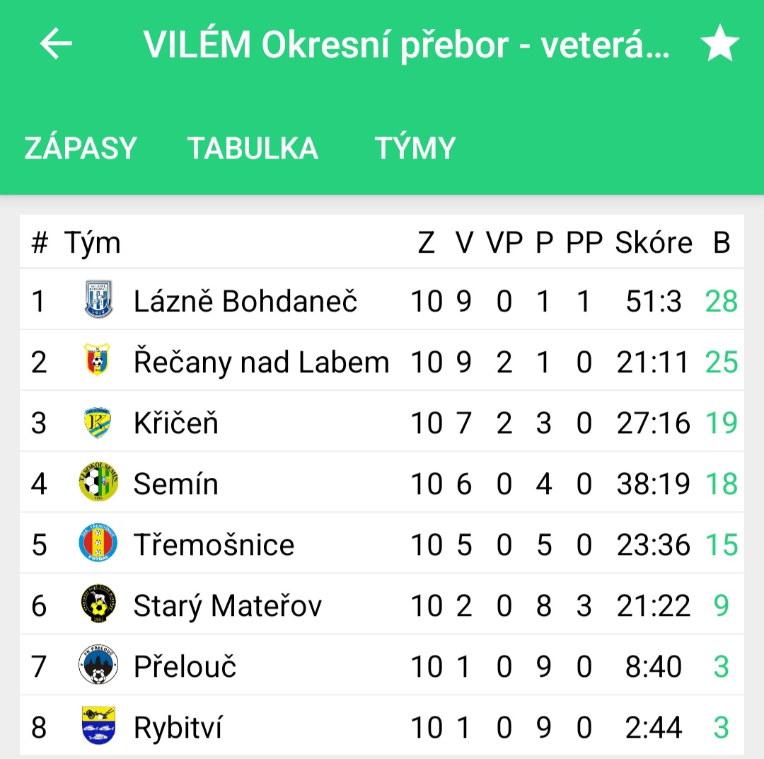 Pokračoval Okresní přebor veteránů